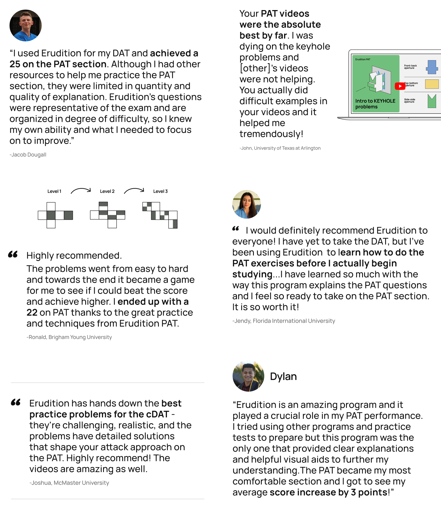 We love to hear how our materials are helping DAT students, particularly those who struggle with perceptual ability and really want to improve their skills. Here's what our students are saying: